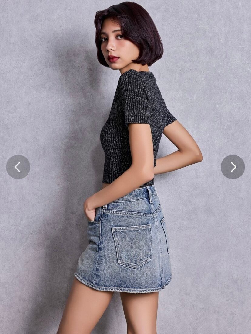 首元はクルーネックなのでデコルテが見え、素材もシャリ味がありさらさらしているので夏になってからも着用しやすいトップスです。
