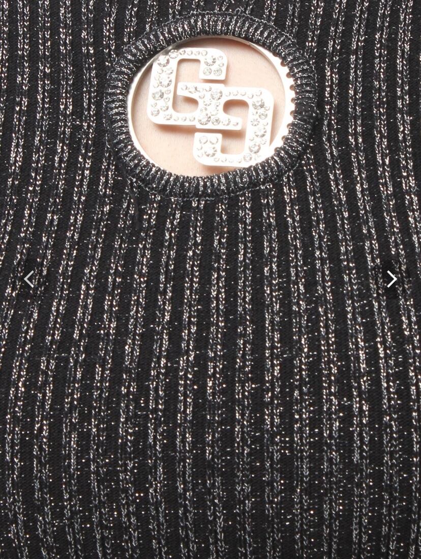 キラキラとしたストーンで埋め尽くされたGGロゴのモールドがポイントのトップス。