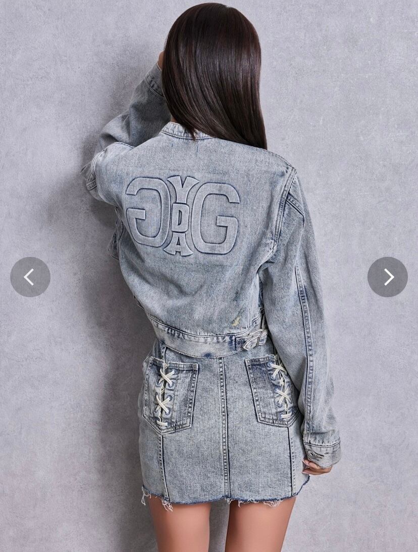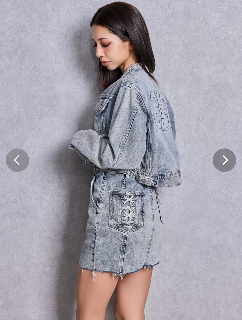 Symmery GYDA EMBOSSノーカラーデニムショートブルゾン