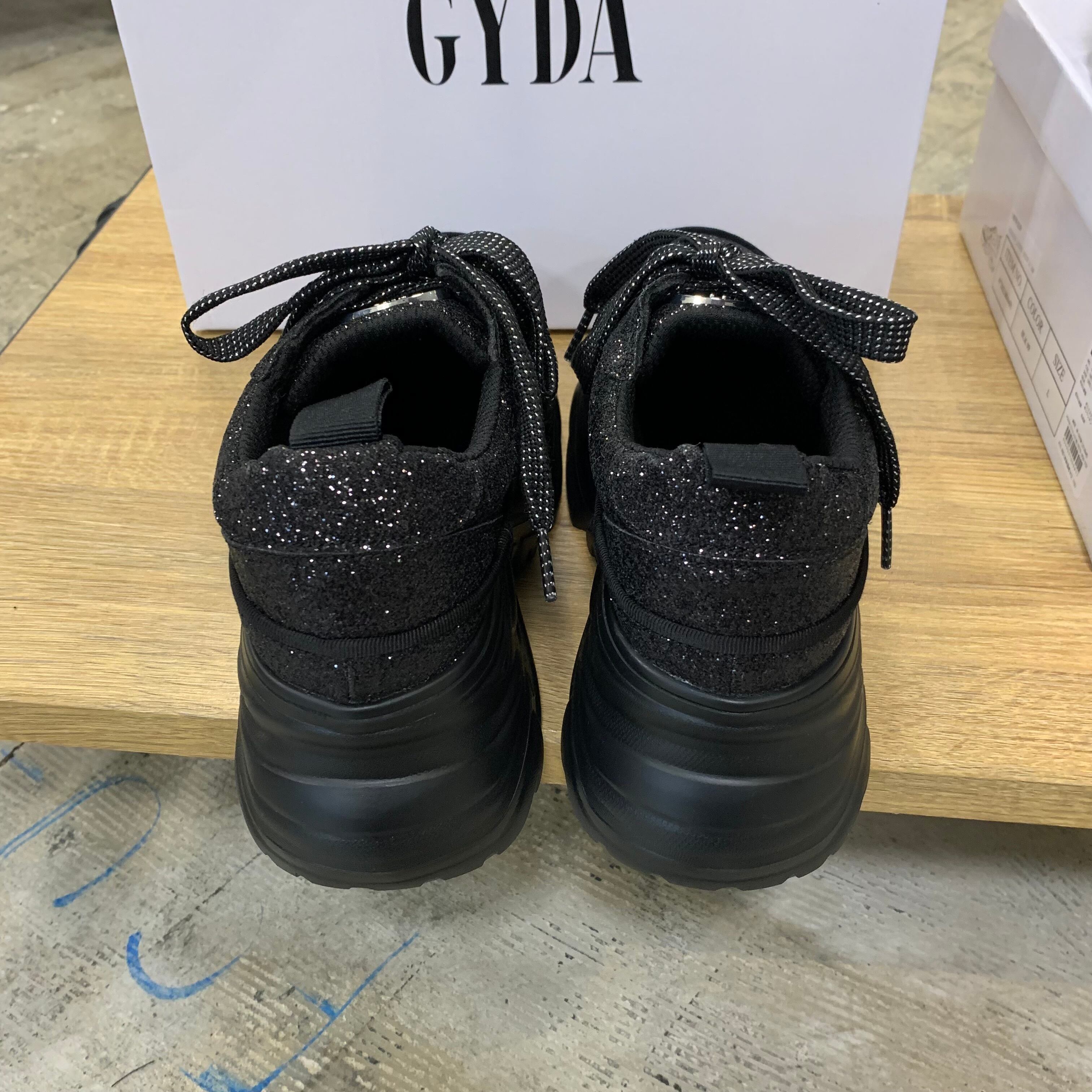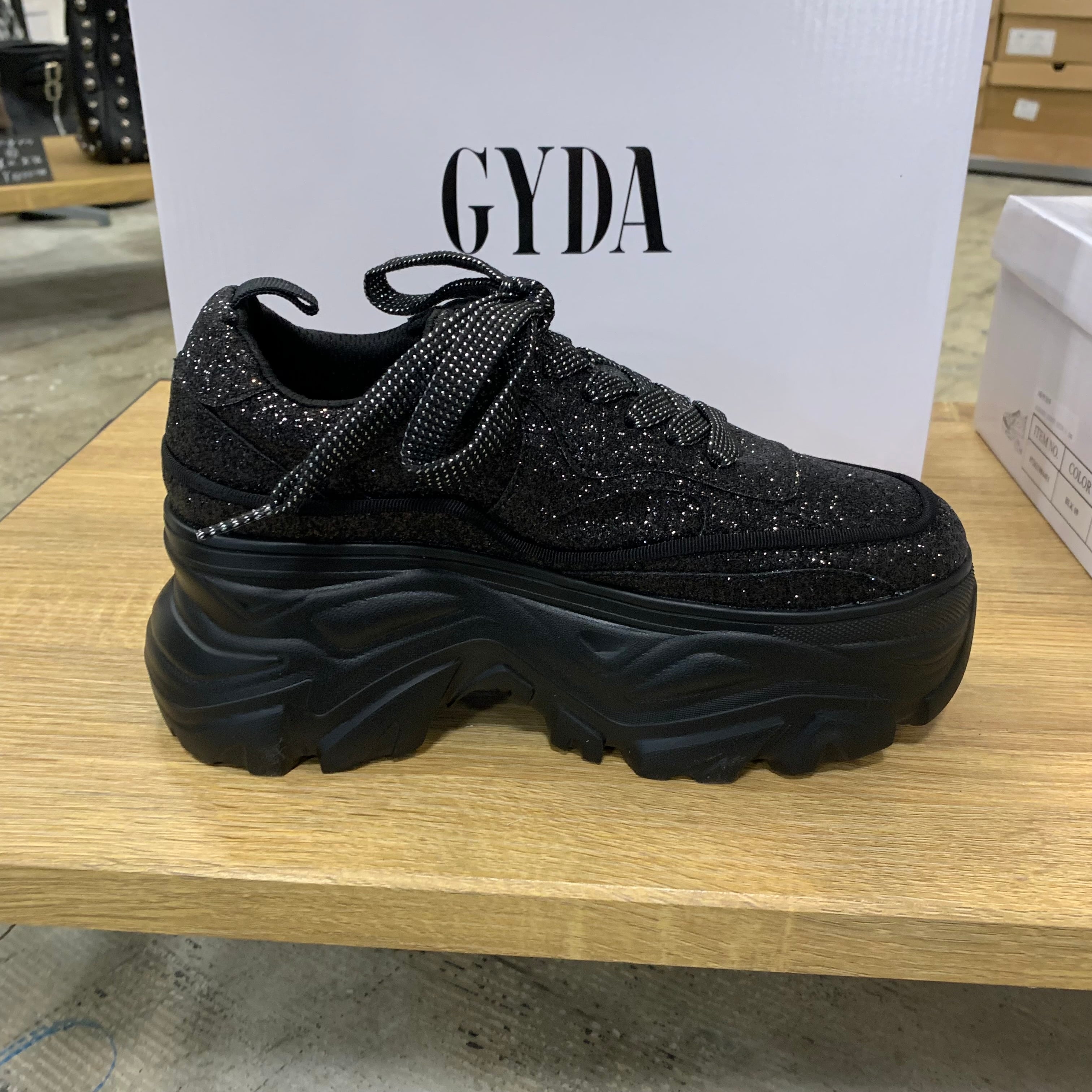 ボディーにグリッター素材を使用した、圧倒的存在感を放つ厚底スニーカー。
