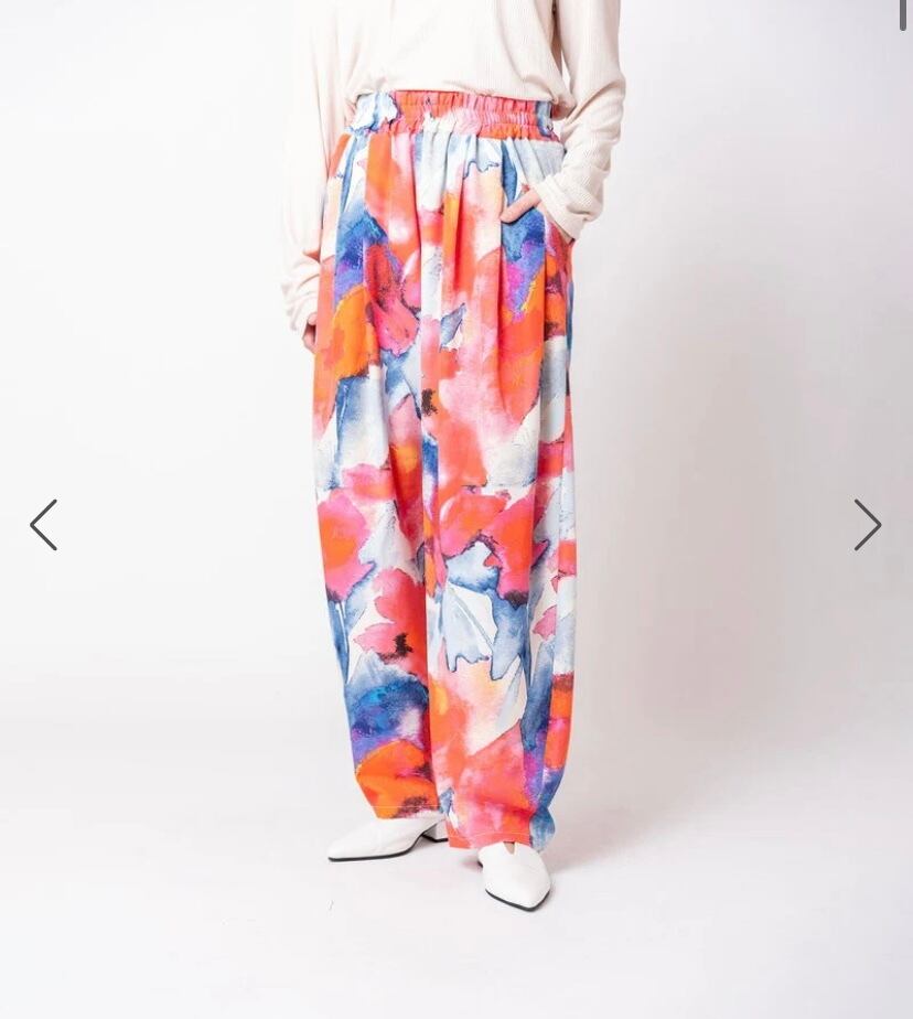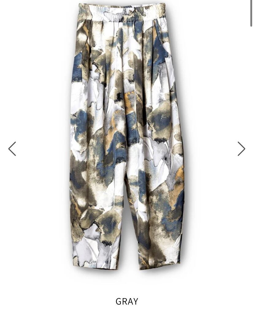 春夏のスタイリングに欠かせないプリントパンツは、水彩タッチなニュアンスが大人っぽいムード。