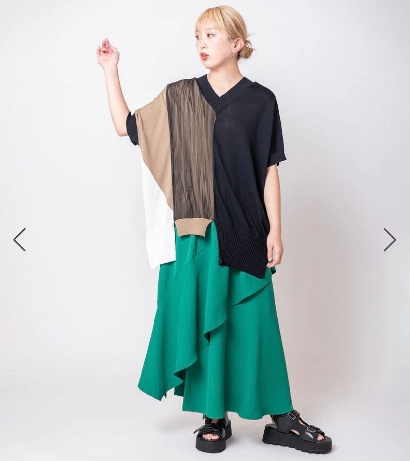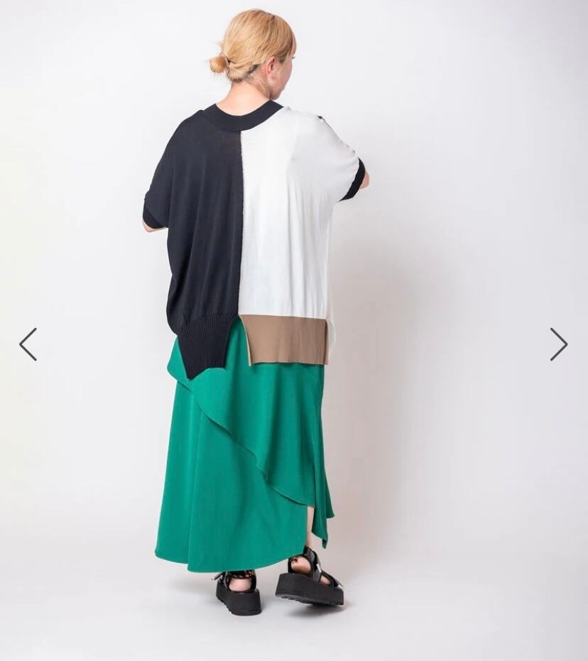 アイコニックな切替ニットに、繊細なチュールをレイヤード。