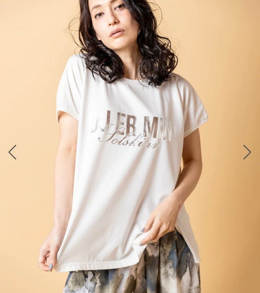 女性らしさを引き立てるシルエットに、ミニマルな箔ロゴが映えるTシャツ。