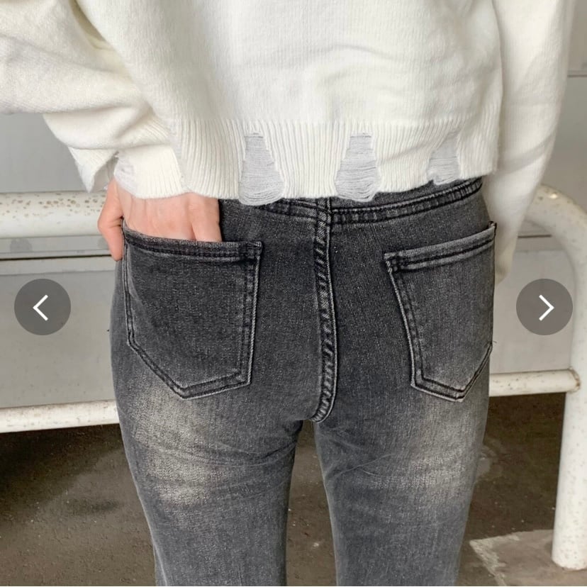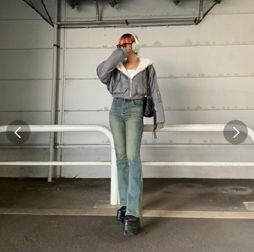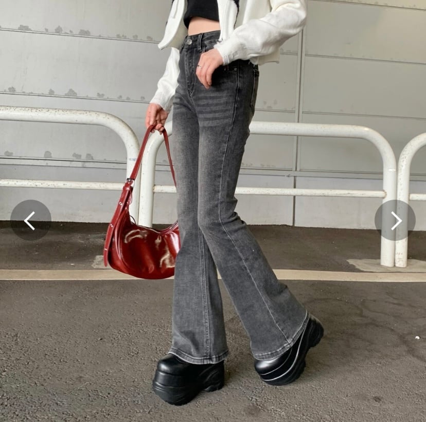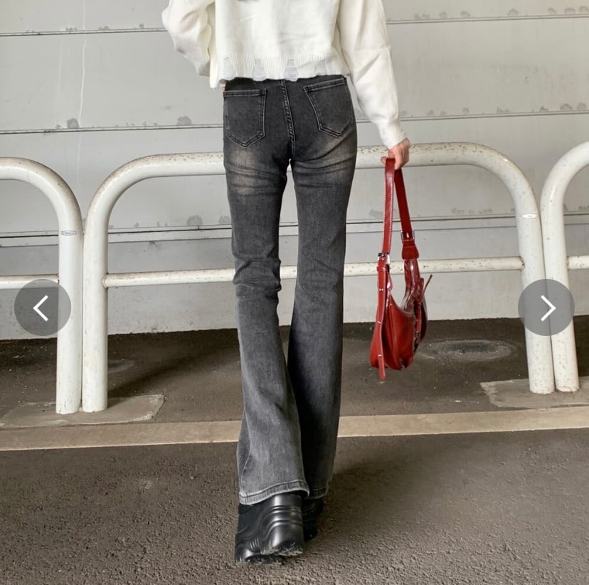 デニムフレアパンツ。