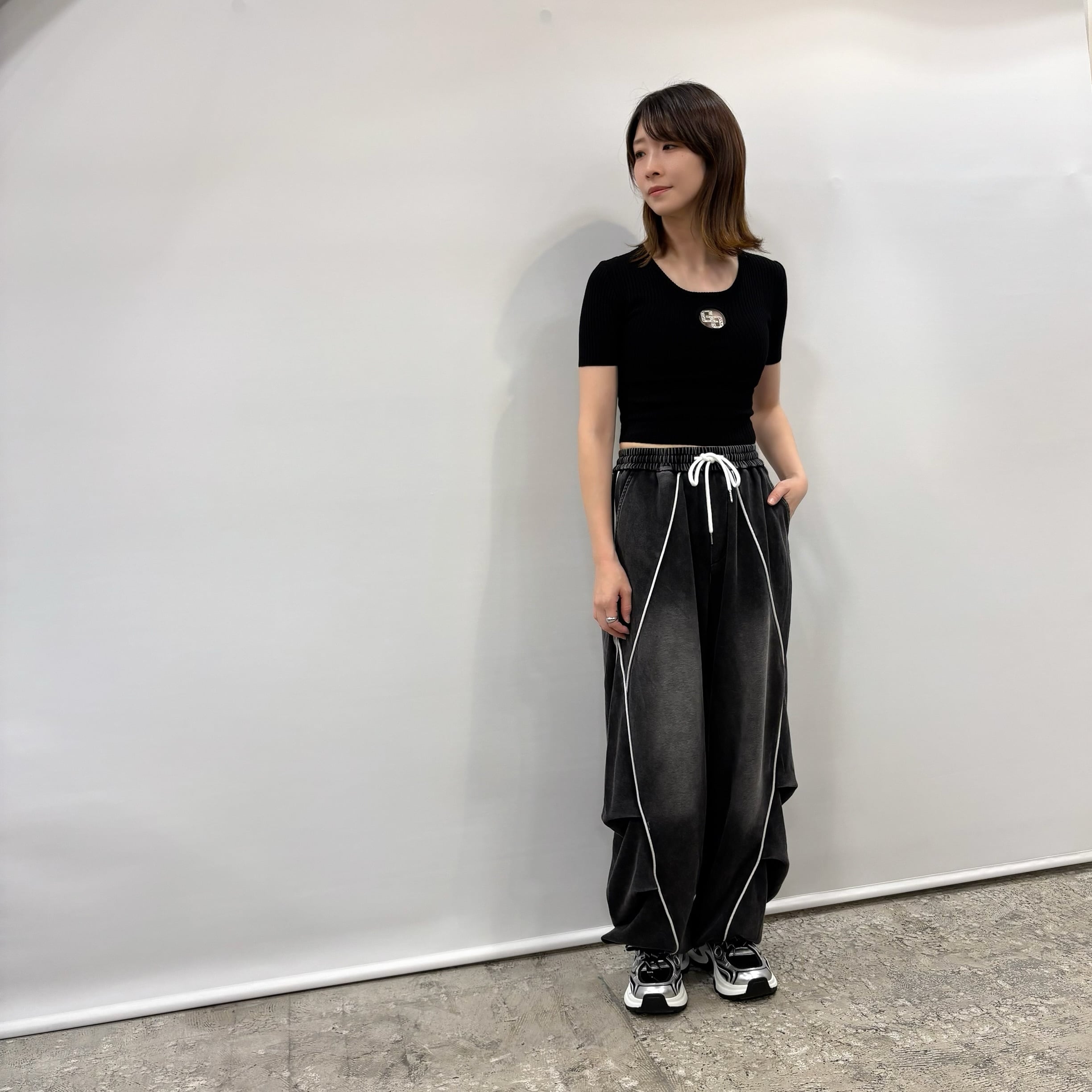 着丈:102cm ウエスト64cm(ゴム仕様) ヒップ:112cm もも周り:64cm 股上:34cm 股下:70cm 裾周り:62cm